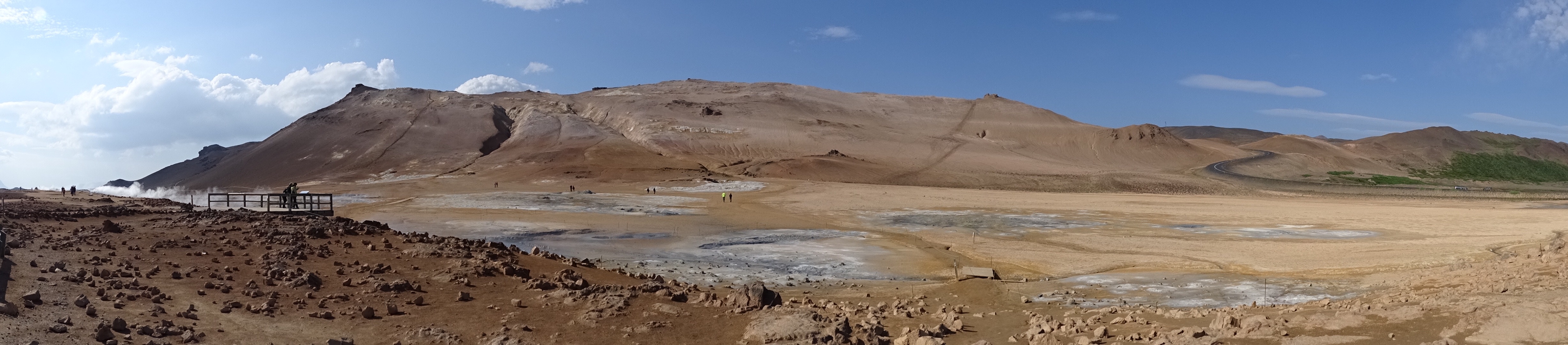 Anschließend sind wir noch zum gegenüberliegendem Geothermalgebiet gefahren. Hier trifft man erneut auf riesige Spalten im Berg, aus denen pausenlos Dämpfe und Flüssigkeiten sprudeln. Was an dieser Gegend so besonders ist, die Landschaft verwandelt sich langsam in eine komplett schwarze Mondlanfschaft, da es die Folgen eines riesigen Vulkanausbruchs sind. Wir haben es leider nicht geschafft so weit zu kommen, allerdings erzählte uns Martin, dass man irgendwann einfach nur noch in Mitten einer pechschwarzen Gesteinslandschaft steht und denkt man wäre auf einem anderen Planeten. Vermutlich ist das auch der Grund wieso in Island so viele Tests und Übungen der NASA durchgeführt werden.