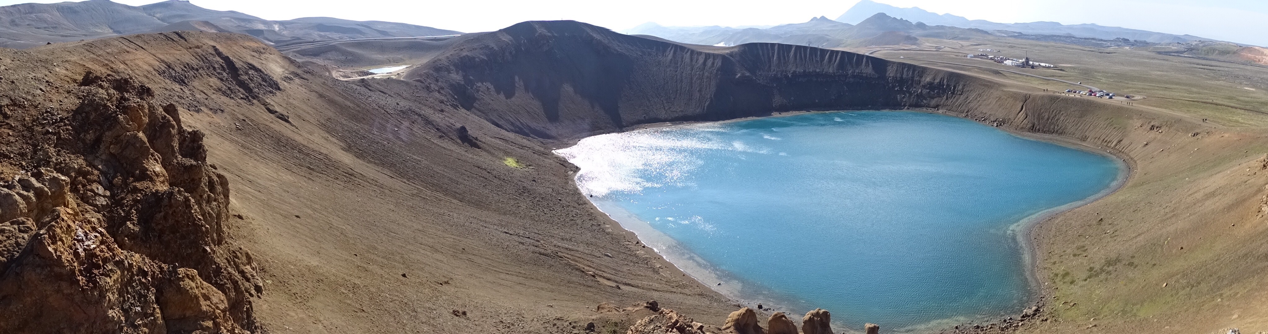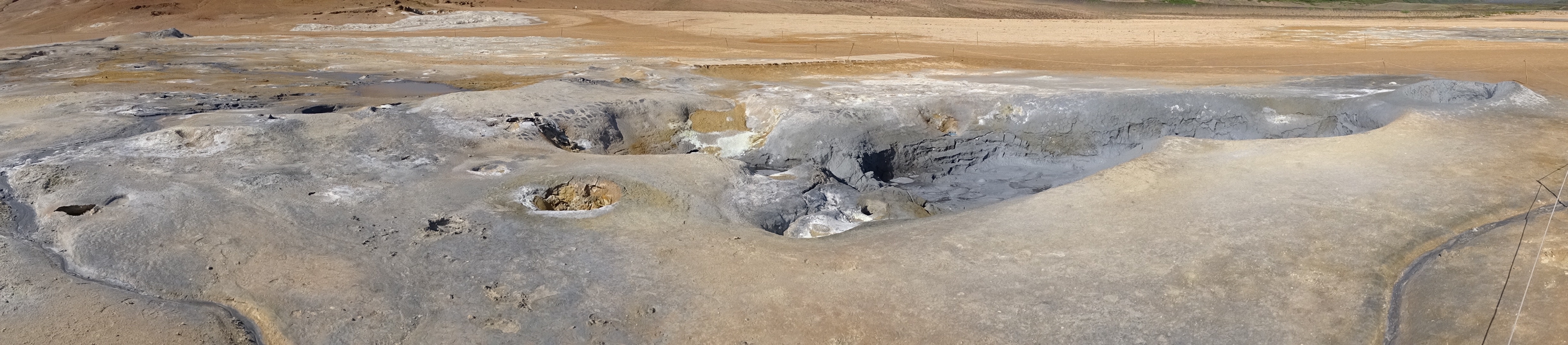 Das ist echt schon ne surreale Gegend. Die Landschaft wechselt einfach komplett von unendlich grünen Wiesen und Bergen zur Wüstenlandschaft ala Breaking Bad in allen möglich rot gelben Ockertönen. Man trifft auf türkisblaue Seen, in die mit unglaublicher Lautstärke und Naturgewalt, bis zu 100 Grad heiße Wasserfontänen gepumpt werden. Die Gegend ist eine unterirdisch extrem aktive Landschaft und wird deshalb auch direkt für die Wirtschaft genutzt. Kein Kilometer unterhalb des Vulkankraters Viti (siehe Bild oben) wurde deshalb eine riesige Powerstation errichtet, die mit einem breit verzweigtem Pipelinesystem die Unterwelt anzapft.
