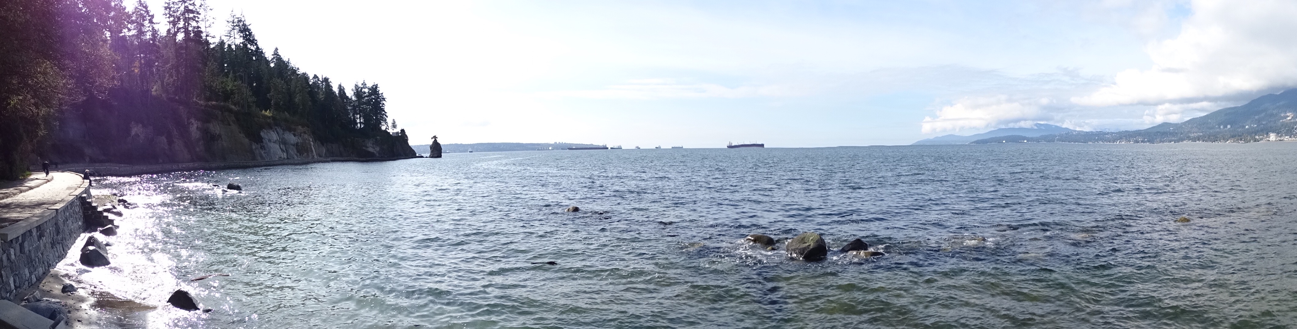 Im Gegensatz zu Toronto und Montreal mit 600-700 Tsd Einwohnern (in der Stadt gerechnet) natürlich wesentlich kleiner…aber die Mischung von Metropole und Natur ist meiner Meinung auf jeden Fall einmalig. Downtown ist natürlich wie die meisten Großstädte in Nordamerika mit Hochkäusern und einigen Wolkenkratzern übersäht, aber für uns sahen die eher nach Hotels aus und nicht wirklich nach vielen Business- oder Bankgebäuden. Downtown ist quasi ne kleine Insel und entscheidet man sich in Richtung Norden oder Osten ans Wasser zu laufen, hat man direkt die Ausläufe der Rocky Mountains vor der Nase. Geht man allerdings in die andere Richtung, zur westlichen Seite Downtowns, steht man an nem echt schönen Strand der nen hamma Ausblick auf den Pazifik und, wenn man gute Augen hat, Vancouver Island bietet. Im Norden Downtowns erstreckt sich der riesige Stanley-Park, den wir auch mit unseren Cruiser-Bikes ganz entspannt bei angenehmen 18 Grad  umradelt haben. Die Mischung aus Bergen auf der einen, aber Pazifik und Strand auf der anderen Seite hat mich auf jeden Fall völlig überzeugt und ich muss zugeben, dass Vancouver wohl die schönste Stadt ist, die ich bis jetzt besucht habe (was nichts heißt, da ich echt noch nich viel gesehen habe :D).