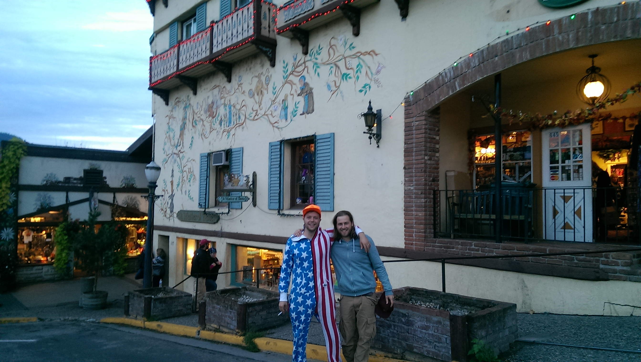 Highlight war auf jeden Fall der Wochenendausflug nach Leavenworth. Da nun 3 „Deutsche“ zu Besuch waren, haben sich die Ammis kurzum gedacht, dass es eine gute Idee wäre mit 25 Leuten in ein Bazidorf mitten in den Staaten zu fahren und den Geburtstag von ner Freundin von Jochen und Chelsie, in ner riesigen Hütte zu feiern…Angekommen in der Bear Mountain Lodge wurde das typische Klischee der amerikanischen Hausparties dann auch vollkommen bestätigt 😀 Rote Becher…Handstand auffem Fass (kein Plan wofür dass genau gut sein soll) …Bier Pong…hier und da die ersten komatösen Totalausfälle und dann gegen 00:30…Zapfenstreich!!! Das kannten wir leider schon von der 90 er Party…die Ammis saufen ab 8 Uhr brachial wie die Ketzer und um 00:00 – 01:00 ist dann jeder so zugesoffen, dass relativ fix Feierabend ist. Für Jochen, und uns natürlich nicht ganz verständlich…da geht man ja gegen 01:00 evtl erstmal angetrunken los. Naja andere Länder andere Sitten…Abgeschlossen wurde das Wochenende dann zünftig mit nem Leberkas, Spezi und Kartoffelsalat…Insgesamt war es ne absolut geniale Woche und an dieser Stelle nochmal ganz vielen lieben Dank an Chelsie und Jochen, dass sie uns ganz selbstverständlich in ihrer Bude aufgenommen haben und uns mal wieder Amerika ein Stück weit näher gebracht haben…hoffe man sieht sich in Montana zur Hochzeit 😉